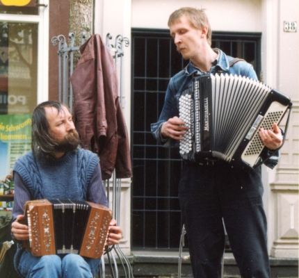 Seit 1993 Valse Nomade - ein akkordeonistischer Streifzug durch Ost & West mit literarischem Handgepäck, ausgefaltet von Stefan Goreiski & Matthias Lorenz, Akkordeons